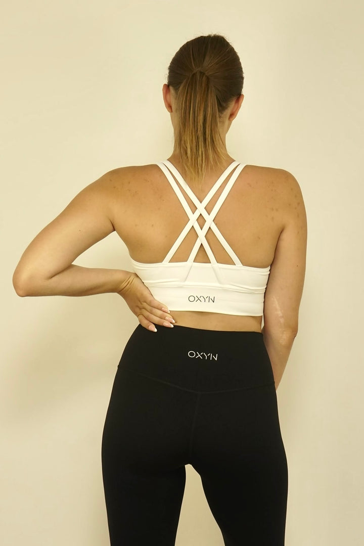 - Elegantne naramnice na hrbtu: Na zadnji strani ima prekrižane naramnice, ki nudijo ne le oporo, ampak tudi privlačen in moderen videz.
