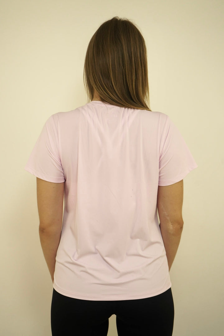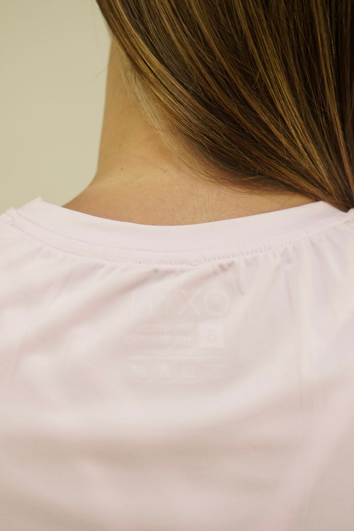 - Svetla, enobarvna barva: Majica je v nežnem, svetlem odtenku, ki je primeren za različne kombinacije.